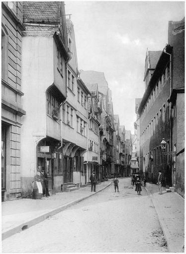 | Keywords: Frankfurt Am Main-Fay-BADAFAMNDN-Heft 16-Nr 187-1904-Die Klostergasse-UCSAR.jpg Artwork Creator Carl Friedrich Fay 187 The Klostergasse Abbey Lane Die Klostergasse früher Predigergasse oder žzu den Predigern geht vom Arnsburger Hof bis zur ehemaligen roten Badstube beim Einhornplätzchen Den alten Namen hatte sie von den Predigermönchen die sich im 13 Jahrhundert dort angesiedelt hatten Auf dem vorliegenden Bilde ist ein Teil der heutigen Klostergasse von der Battonstrasse bis zu ihrer Ausmündung beim Einhornplatz sichtbar Sie bietet meist noch das Aussehen einer Strasse an der seit mehr als hundert Jahren keine Änderung vorgenommen wurde; nur links zeigt sich das Stück eines Neubaues während rechts noch das alte Gebäude der Rosenberger Einigung sichtbar ist von der ein anderer Teil auf die Stätte der dahinverlegten Annaschule hinweist ca 1904 technique collotype dry plate size cm 21 49 15 69 unknown Private collection Mylius Frankfurt am Main object history credit line Uncropped semi-automatically retouched version Unbeschnittene halbautomatisch retuschierte Fassung accession number Carl Friedrich Fay Carl Friedrich Mylius Franz Rittweger Fritz Rupp Bilder aus dem alten Frankfurt am Main Nach der Natur Verlag von Carl Friedrich Fay Frankfurt am Main 1896 “1911 PD-old Bilder aus dem alten Frankfurt am Main Nach der Natur Klostergasse Frankfurt Demolished buildings in Frankfurt-Altstadt 1904 in Frankfurt am Main |