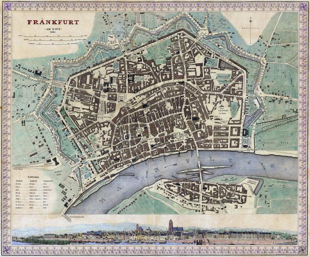 | Keywords: Frankfurt Am Main-Freie Stadt Frankfurt-Plan-1845.jpg author 1837 / 1845 steel engraving hand-coloured cm 36 30 Private collection Mylius Frankfurt am Main object history credit line Although published in 1845 the map is just a slightly revised and therefore partly yet obsolete version of an 1837 plan by the Society for the Diffusion of Useful Knowledge Obwohl 1845 veröffentlicht handelt es sich bei der Karte nur um eine geringfügig und somit bereits damals in Teilen wieder überholte Version eines Planes der Society for the Diffusion of Useful Knowledge von 1837 accession number Frankfurt Am Mayn 1845 Meyer's Handatlas No 62 In Joseph Meyer Hrsg Grosser Hand-Atlas über alle Theile der Erde in 170 Karten Verlag des Bibliographischen Instituts Hildburghausen 1843 “60 PD-old QualityImage Maps of Frankfurt am Main showing 19th-century history 1845 Quality images of Frankfurt am Main 1845 maps Society for the Diffusion of Useful Knowledge Great Britain |