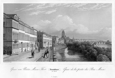 | Keywords: Frankfurt Am Main-Jakob Fuerchtegott Dielmann-FFMADIUSAAUNZ-007-Kay am Untermainthor.jpg Artwork Creator Jakob Fürchtegott Dielmann Wilhelm Lang Quay at at the Untermainthor Lower Main Gate Kay am Untermainthor 1845 steel engraving cm 13 32 19 41 Mylius Frankfurt am Main object history credit line accession number Jakob Fürchtegott Dielmann Frankfurt am Main Album der interessantesten und schönsten Ansichten alter und neuer Zeit 2 Auflage Verlag von Carl Jügel Frankfurt am Main 1848 PD-old-100 Frankfurt am Main Album der interessantesten und schönsten Ansichten alter und neuer Zeit 09 Alte Brücke Frankfurt am Main Fahrtor Mainkai Untermainkai Remote views of the Kaiserdom St Bartholomäus Leonhardskirche Frankfurt Rententurm Saalhof |