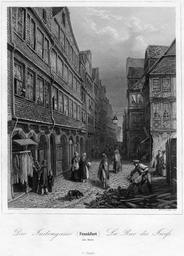 | Keywords: Frankfurt Am Main-Jakob Fuerchtegott Dielmann-FFMADIUSAAUNZ-013-Die Juden-Gasse.jpg Artwork Creator Jakob Fürchtegott Dielmann Wilhelm Lang The Jews' Alley Die Juden-Gasse 1845 steel engraving cm 17 82 12 81 Mylius Frankfurt am Main object history credit line accession number Jakob Fürchtegott Dielmann Frankfurt am Main Album der interessantesten und schönsten Ansichten alter und neuer Zeit 2 Auflage Verlag von Carl Jügel Frankfurt am Main 1848 PD-old-100 Frankfurt am Main Album der interessantesten und schönsten Ansichten alter und neuer Zeit 15 Judengasse Frankfurt Jewish street names in Germany |
