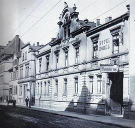 | Keywords: Frankfurt-Bockenheim Adalbertstraße 16 1906.jpg Akroterion als Architekturelement der Bekrönung des Giebelfirstes sowie zahlreiche Vasen und natürlich auffallende Voluten an den Giebelecken Hinter dem Hotel/Gasthausgebäude an der Straßenfront vormals Schöne Aussicht dann nach Eingemeindung 1895 Adalbertstraße gab es noch einen Gartenlokalbereich sowie ergänzende Gebäude wie Kegelbahn Apfelwein-Kelterhaus und ein Vereinssaal für Veranstaltungen Hier veranstaltete z B am Samstag den 11 02 1893 die Bockenheimer Turngemeinde einen Maskenball Gemäß Auszug aus der ALLGEMEINEN DEUTSCHEN LEHRERZEITUNG 1896 fand in Bockenheim im 'Rheingauer Hof' die 28 Jahresversammlung der israelitischen Lehrer Kurhessens statt Nach dem Stadtchronist Hermann Ludwig wurde das Gasthaus 1830 erbaut 1832 weiterverkauft an Bücking 1839 an Jean Pierre Jansen 1857 entstand der Saalbau als Hinterhaus 1882 erwarb den Rheingauer Hof zeitweise der Rheinische Actien-Verein für Weinbau und Weinhandeles Dilthey Sahl Comp als Hotel Kräusel Zu der Gründern dieser 1867 errichteten Gesellschaft gehörte Theodor Dilthey aus einer der größten Rheingauer Weinhändlerfamilien und Erster Präsident der Wiesbadener Industrie- und Handelskammer In den 1880er Jahren entwickelte sich die Gesellschaft zum Hoflieferanten des Kaisers von Österreich sowie des russischen Zaren Um 1900 kaufte den Rheingauer Hof der Hotelier Jean Zobel daher auch Namensbenennung Hotel Zobel siehe Foto der Frontseite 1935 war seine Tochter Frl A M Zobel Eigentümerin Während des Zweiten Weltkriegs wurden hier Zwangsarbeiter für Hartmann Braun AG einquartiert Fliegerbomben zerstörte das Gebäude 1944 Heute steht hier ein Wohn- und Geschäftshauskomplex mit einer Tiefgarageneinfahrt Source Author 1906 Buildings in Frankfurt-Bockenheim History of Frankfurt-Bockenheim Adalbertstraße Cc-zero |