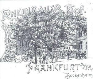 | Keywords: Frankfurt-Bockenheim Adalbertstraße 16 1903 A2.jpg de Ausschnittsvergrößerung aus AK von 1903 hier Innenhof Frankfurt-Bockenheim Adalbertstraße 16 Nordseite Das Gebäude des Gasthauses Zum Rheingauer Hof entstand bereits zwischen 1823 und 1840 in der damals noch selbständigen Stadt Bockenheim von Kurhessen Entsprechend der damaligen Zeit wurde das Gebäude mit einem auffallenden Giebelschmuck versehen Höhepunkt ist das Akroterion als Architekturelement der Bekrönung des Giebelfirstes sowie zahlreiche Vasen und natürlich auffallende Voluten an den Giebelecken Hinter dem Hotel/Gasthausgebäude an der Straßenfront vormals Schöne Aussicht dann nach Eingemeindung 1895 Adalbertstraße gab es noch einen Gartenlokalbereich sowie ergänzende Gebäude wie Kegelbahn Apfelwein-Kelterhaus und ein Vereinssaal für Veranstaltungen Hier veranstaltete z B am Samstag den 11 02 1893 die Bockenheimer Turngemeinde einen Maskenball Gemäß Auszug aus der ALLGEMEINEN DEUTSCHEN LEHRERZEITUNG 1896 fand in Bockenheim im 'Rheingauer Hof' die 28 Jahresversammlung der israelitischen Lehrer Kurhessens statt Nach dem Stadtchronist Hermann Ludwig wurde das Gasthaus 1830 erbaut 1832 weiterverkauft an Bücking 1839 an Jean Pierre Jansen 1857 entstand der Saalbau als Hinterhaus 1882 erwarb den Rheingauer Hof zeitweise der Rheinische Actien-Verein für Weinbau und Weinhandeles Dilthey Sahl Comp als Hotel Kräusel Zu der Gründern dieser 1867 errichteten Gesellschaft gehörte Theodor Dilthey aus einer der größten Rheingauer Weinhändlerfamilien und Erster Präsident der Wiesbadener Industrie- und Handelskammer In den 1880er Jahren entwickelte sich die Gesellschaft zum Hoflieferanten des Kaisers von Österreich sowie des russischen Zaren Um 1900 kaufte den Rheingauer Hof der Hotelier Jean Zobel daher auch Namensbenennung Hotel Zobel siehe Foto der Frontseite 1935 war seine Tochter Frl A M Zobel Eigentümerin Während des Zweiten Weltkriegs wurden hier Zwangsarbeiter für Hartmann Braun AG einquartiert Fliegerbomben zerstörte das Gebäude 1944 Heute steht hier ein Wohn- und Geschäftshauskomplex mit einer Tiefgarageneinfahrt source author ~ 1903 pd-old Cc-zero Zum Rheingauer Hof Bockenheim |