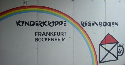 Keywords: Frankfurt-Bockenheim Rohmerplatz A34.jpg Frankfurt Bockenheim Rohmerplatz ehemaliges Sozialrathaus Kinderkrippe Regenbogen own 2013-08-13 25asd Rohmerplatz Cc-zero