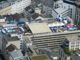 Keywords: frankfurt hesse restaurant architecture main building city modern frankfurt am main germany window facade roof terrace outlook view pool swimming pool refresh