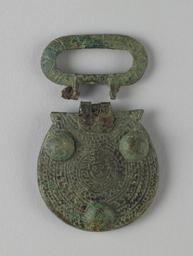 | Keywords: Frankish - Belt Buckle - Walters 542345.jpg This buckle is of a type manufactured in workshops near Paris during the last third of the 6th century It is incised with bands of concentric geometric ornament centering on a human face interpreted variously as Medusa or when surmounted by a cross as Christ In either case the face is an apotropaic device intended to protect the wearer from evil late Other date century 6 Early Medieval bronze cm 9 4 6 1 accession number 54 2345 30842 Joseph Brummer New York Joseph Brummer Sale Parke-Bernet Galleries New York May 12 1949 no 278 Walters Art Museum 1949 by purchase Museum purchase 1949 Early Christian and Byzantine Art Baltimore Museum of Art Baltimore 1947 Jewelry - Ancient to Modern The Walters Art Gallery Baltimore 1979-1980 place of origin Ile-de-France France Walters Art Museum license Medieval metalwork in the Walters Art Museum Ancient Germanic belt buckles Media contributed by the Walters Art Museum needs category review |