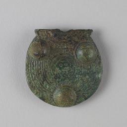 | Keywords: Frankish - Belt Buckle - Walters 542344.jpg This buckle is of a type manufactured in workshops near Paris during the last third of the 6th century It is incised with bands of concentric geometric ornament centering on a human face interpreted variously as Medusa or when surmounted by a cross as Christ In either case the face is an apotropaic device intended to protect the wearer from evil late Other date century 6 Early Medieval bronze cm 5 9 5 7 1 5 accession number 54 2344 3350 Joseph Brummer New York Joseph Brummer Sale Parke-Bernet Galleries New York May 12 1949 no 278 Walters Art Museum 1949 by purchase Museum purchase 1949 Early Christian and Byzantine Art Baltimore Museum of Art Baltimore 1947 Jewelry - Ancient to Modern The Walters Art Gallery Baltimore 1979-1980 place of origin Ile-de-France France Walters Art Museum license Medieval metalwork in the Walters Art Museum Ancient Germanic belt buckles Media contributed by the Walters Art Museum needs category review |