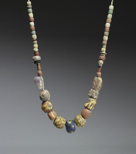 Keywords: Frankish - Necklace - Walters 47596 - View A.jpg This simple but colorful necklace is composed of fifty beads most of which are glass or ceramic with a single amethyst bead Similar necklaces have been found in the graves of Frankish women in the Rhineland This necklace is one of 21 said to have been excavated at Niederbreisig Germany mid 6th-7th century Early Medieval glass ceramic amethyst bronze gold cm 2 6 57 2 6 accession number 47 596 11266 Friedrich Queckenberg Niederbreisig Germany ca 1890 Joseph Queckenberg Niederbreisig Germany 1909 by inheritance Heinrich Dreesen Sinzig Germany Jacques Seligmann Paris J Pierpont Morgan New York Metropolitan Museum of Art New York no 17 193 74 Sale 4629Y Sotheby Park Bernet Inc New York May 29 1981 lot no 25 Walters Art Museum 1981 by purchase Museum purchase in memory of Eloise Mackie Childs 1981 3000 Years of Glass Treasures from The Walters Art Gallery The Walters Art Gallery Baltimore 1982 Vive la France French Treasures from the Middle Ages to Monet The Walters Art Gallery Baltimore 1999-2000 place of origin Malkata present-day Western Thebes Egypt Walters Art Museum license Medieval metalwork in the Walters Art Museum Jewellery in the Walters Art Museum Merovingian jewellery Media contributed by the Walters Art Museum needs category review Niederbreisig Vive la France French Treasures from the Middle Ages to Monet |