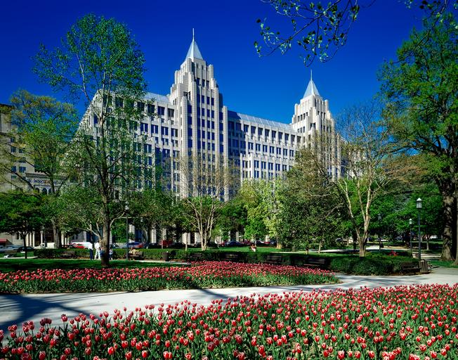 Keywords: franklin park washington d c city urban flowers plants tulips buildings nature outdoors idyll hdr
