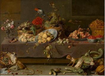 | Keywords: Frans Snyders - Flowers and fruit.jpg Artwork Creator Frans Snyders 1601-1657 Oil on canvas size cm 163 9 232 Institution Royal Museum of Fine Arts Antwerp object history credit line accession number http //62 221 199 163/kmska2/zoom aspx image 893 001 jpg title Bloemen 20en 20vruchten PD-old-100 Paintings of live animals by Frans Snyders Still life paintings by Frans Snyders Flemish Baroque paintings in the Royal Museum of Fine Arts Antwerp Paintings of baskets Paintings of vegetables 1601-1650 paintings |