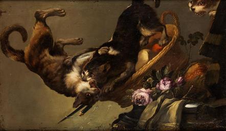 | Keywords: Frans Snyders Kämpfende Katzen.jpg Stillleben mit kämpfenden Katzen Oil on canvas painting cm 56 91 5 unknown https //www hampel-auctions com/ other versions <gallery>File Frans Snyders workshop Kämpfende Katzen jpg</gallery> PD-old-100 Paintings of live animals by Frans Snyders 17th-century paintings location missing 17th-century paintings not categorised by year 17th-century paintings of cats Fighting animals in art Fighting cats Images from Hampel Auctions | ||||