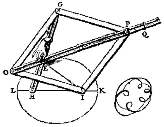 | Keywords: Frans van Schooten - Ellipsenzirkel.png Ellipsenzirkel nach Frans van Schoten Der Gelenkmechanismus wurde von dem holländischen Mathematiker im 17 Jahrhundert erfunden Wenn man am Stift in Punkt E zieht zeichnet dieser eine Ellipse Der Mechanismus ist an den Brennpunkten H und I auf der Zeichenunterlage befestigt Ellipsographe à cercle directeur la barre HG a pour longueur 2a demi-grand axe de l'ellipse OIPG est un losange H et I sont placés aux deux foyers de l'ellipse Lorsqu'on place un crayon au point E et qu'on le fait glisser dans la rainure OP le losange se déforme et le crayon dessine une elllipse de wikipedia B222 CommonsHelper 2004-09-20 Niesefrosch wikipedia de PD-old original upload log page de wikipedia Frans_van_Schooten_-_Ellipsenzirkel png 2004-09-20 07 14 Niesefrosch 354×275× 3493 bytes <nowiki>Ellipsenzirkel nach Frans van Schooten</nowiki> Lueger Ellipse construction Lueger/Tools Compass drafting Frans van Schooten Trammel of Archimedes |