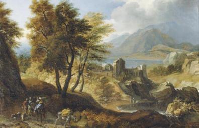| Keywords: Franz Joachim Beich Mountainous river landscape with travellers.jpg A mountainous river landscape with travellers on a track a fortified town beyond Oil on canvas 56 8 x 87 2 cm Signed Beich Christie's online 4987618 2769 229 by 1748 Creator Franz Joachim Beich <gallery>File Franz Joachim Beich Mountainous wooded landscape jpg counterpart</gallery> PD-old-100 Franz Joachim Beich | ||||