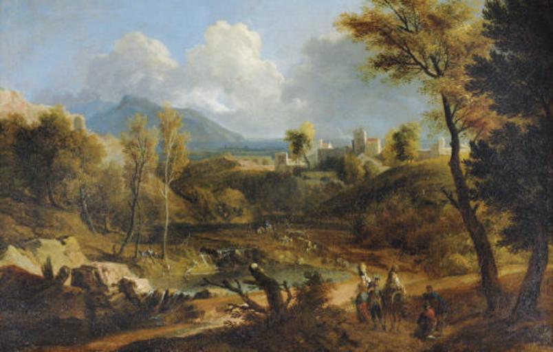 Keywords: Franz Joachim Beich Mountainous wooded landscape.jpg A mountainous wooded landscape with travellers near a lake a town beyond Oil on canvas 56 8 x 87 2 cm Christie's online 4987618 2769 229 by 1748 Creator Franz Joachim Beich <gallery>File Franz Joachim Beich Mountainous river landscape with travellers jpg counterpart</gallery> PD-old-100 Franz Joachim Beich |