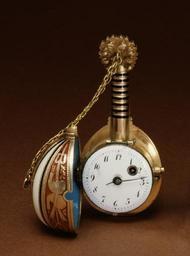 | Keywords: Franz Schmit - Mandolin-Shaped Watch - Walters 5834 - Front Open.jpg This mandolin-shaped watchcase was probably produced in Switzerland whereas the movement is Austrian Swiss watches at this time were known for their novel shapes between 1830 1835 gold enamel cm 6 4 accession number 58 34 25740 Henry Walters Baltimore date and mode of acquisition unknown Walters Art Museum Henry Walters Acquired by Henry Walters Signature Franz Schmit in Gratz Jewelry - Ancient to Modern The Walters Art Gallery Baltimore 1979-1980 Objects of Adornment Five Thousand Years of Jewelry from the Walters Art Gallery Baltimore Cooper-Hewitt National Design Museum New York; Chrysler Museum of Art Norfolk; Carnegie Museum of Art Pittsburgh; San Antonio Museum of Art San Antonio; Philbrook Museum of Art Tulsa; Honolulu Academy of Arts Honolulu; New Orleans Museum of Art New Orleans; Milwaukee Art Museum Milwaukee; Minneapolis Institute of Arts Minneapolis; Toledo Museum of Art Toledo; The John and Mable Ringling Museum of Art Sarasota 1984-1987 Jewelry from the Walters Art Museum and the Zucker Family Collection The Walters Art Gallery Baltimore 1987 place of origin Switzerland Walters Art Museum license Media contributed by the Walters Art Museum needs category review Timepieces in the Walters Art Museum Media contributed by the Walters Art Museum needs artist review Fob watches 19th-century watches |