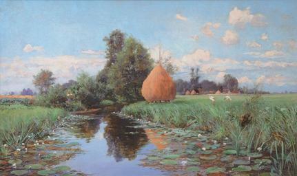 | Keywords: Franz Schreyer - Spreewaldlandschaft mit Blick auf Lehde.jpg oil canvas cm 75 5 125 object history credit line signed lower right accession number http //www auktionshaus-stahl de/307/items/spreewaldlandschaft-mit-blick-auf-lehde-69 html Auktionshaus Stahl PD-old-70-1923 Franz Oskar Bernhard Schreyer Spreewald in art Images from Auktionshaus Stahl Haystacks in art | ||||
