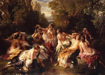 | Keywords: Franz Xaver Winterhalter Florinda.jpg oil canvas 178 4 x 245 7 cm Institution Metropolitan Museum of Art New York City USA accession number 01 21 object history credit line Winterhalter painted another Florinda painting in 1852 Windsor Castle The Royal Collection RCIN 404860 <sup>http //www royalcollection org uk/egallery/object asp maker WINTERHALTER object 404860 row 33</sup> Source External links http //www metmuseum org/works_of_art/collection_database/all/florinda_franz_xaver_winterhalter/objectview aspx page 1 sort 0 sortdir asc keyword Winterhalter fp 1 dd1 0 dd2 0 vw 1 collID 0 OID 110002397 vT 1 www metmuseum org ” Florinda PD-old-100 1853 paintings in the United States Paintings of nude females in nature Group paintings with nude females Paintings by Franz Xaver Winterhalter German paintings in the Metropolitan Museum of Art Paintings of women sitting on the ground outdoors Roderic Castles in art 19th-century oil paintings of women at full length |