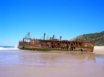 Keywords: Fraser Island a01 wrack.jpg Wreck at the beach of Fraser Island own 2004-08-08 Sensenmann Shipwreck of Maheno ship 1905