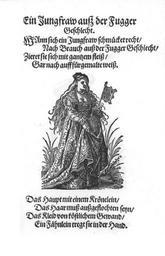 Keywords: Frauen-Trachtenbuch 009.jpg 008 010 Ein Jungfraw auß der Fugger Geschlecht House of Fugger History of Augsburg Sigmund Feyerabend People with flags in art