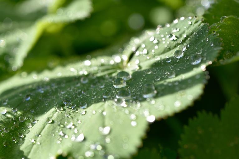 Keywords: frauenmantel plant leaf green drop of water nature close