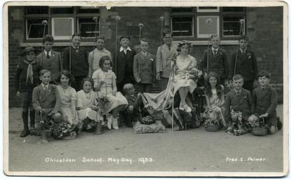 | Keywords: Fred C Palmer Chiseldon School 1933 002.jpg 1933 postcard of Chiseldon School near Swindon Wiltshire England showing a group of school children dressed for May Day celebrations It is one of a set of seven postcards from the 1930s showing children from the same school on May Day There is a May Queen; also Brownies Cubs Scouts and Girl Guides The photographer was Fred C Palmer of Tower Studio Herne Bay Kent ca 1905-1920 and of 6 Cromwell Street Swindon ca 1920-1936 He is believed to have died 1936-1939 This print has darkened with age but it would be inappropriate to adjust the brightness because detail e g on white dresses would be lost Border The remaining border of this image is important for researchers of this photographer Some photographers trimmed their images more than others and Palmer has a reputation for producing smaller postcards than other early 20th century UK photographers He took his own photos developed them in-house onto postcard-backed photographic paper and trimmed them himself It is worth adding that during hand-developing the border is actively masked with equipment which both crops the picture and causes the white frame or border to appear on the paper This frame is part of the design and is one of the reasons why the quality of Palmer's work is so interesting and why there is an article and category for him on English Wiki Researchers need to see exactly where the edge of the postcard is Thank you for taking the time to read this Scan of original postcard in my possession Marked 1933 Fred C Palmer died 1936-1939 out of copyright File Fred C Palmer Chiseldon School 1930s 001 jpg <br/> File Fred C Palmer Chiseldon School 1933 001 jpg <br/> File Fred C Palmer Chiseldon School 1933 003 jpg <br/> File Fred C Palmer Chiseldon School 1934 001 jpg <br/> File Fred C Palmer Chiseldon School 1934 002 jpg <br/> File Fred C Palmer Chisledon School 1934 003 jpg PD-art-70 Fred C Palmer of Swindon Chiseldon People of Wiltshire School children of the United Kingdom 1st of May in the United Kingdom People in 1933 |
