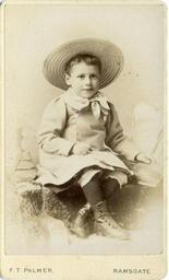 | Keywords: Fred T Palmer 003.jpg 19th century carte de visite photo of a boy in a straw hat by Fred T Palmer of Granville Marina Studios Ramsgate Kent The card is undated but the costume is possibly 1870s-1900 ;Points of interest The boy wears a dress and knickers under his coat because very young boys and girls were dressed alike during that period However the coat hat and scarf may perhaps be taken as boyish Scan of original card s 1870 -1900 Fred T Palmer of Ramsgate d 1910 out of copyright The reverse of this carte de visite is here File Fred T Palmer 003a jpg PD-old-70-1923 DEFAULTSORT 1870s-1900; unknown boy Fred T Palmer of Ramsgate Cartes de visite 19th-century portrait photographs of boys at full length Boys' dresses People of Kent Portraits wearing hats People wearing straw hats |
