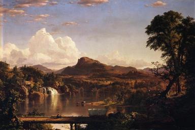 Keywords: frederic church landscape painting art artistic artistry oil on canvas sky clouds trees nature outside scenic country countryside mountains forest woods river water reflections cattle wagon person figure