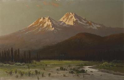 | Keywords: Frederick Ferdinand Schafer - Sunset on Mt. Shasta from Sissons, California.jpg attributed to oil canvas in 18 27 25 object history PROVENANCE Private collection Alameda California by 1970; Thence by descent; Private collection California by 2003 credit line accession number http //www bonhams com/auctions/19417/lot/6/ Bonhams PD-old-auto-1923 1927 Frederick Ferdinand Schafer Mount Shasta in art Images from Bonhams Mount Shasta | ||||