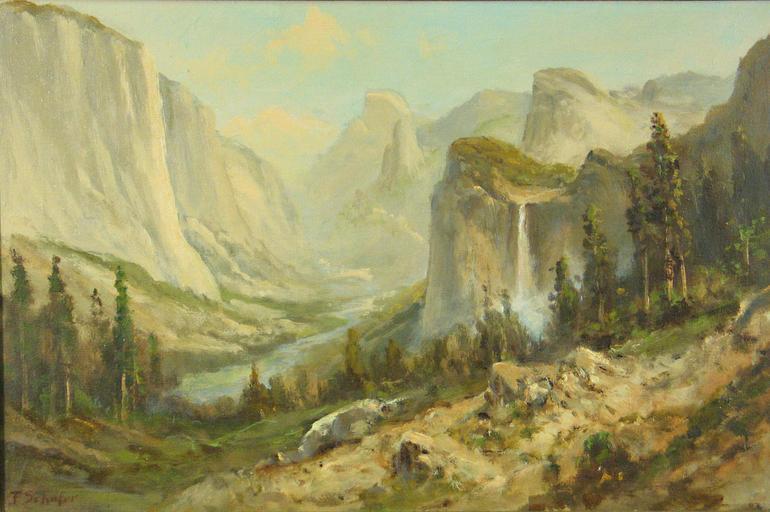 | Keywords: Frederick Ferdinand Schafer - Yosemite Valley.jpg Artwork Creator Frederick Ferdinand Schafer oil canvas in 16 24 25 object history PROVENANCE Private collection Northern California credit line signed 'F Schafer' lower left accession number http //www bonhams com/auctions/17323/lot/2121/ Bonhams PD-old-auto-1923 1927 Frederick Ferdinand Schafer Landscape paintings of the United States Yosemite Valley Images from Bonhams | ||||