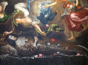 Keywords: Frederik III på ligsengen (Heinrich Ditmar, 1670).JPG Detalje fra Frederik III af Danmark og Norge på lit de parade 1670 Heinrich Ditmar Heinrich Dittmers -1677 Roskilde Domkirke Sjælland own 2014-08 Orf3us Interior of the Roskilde Cathedral Frederick III of Denmark PD-old-100 |
