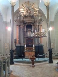 Keywords: Frederiksberg Kirke (alter).jpg Alter med prædikestol i Frederiksberg Kirke Frederiksberg Sjælland own 2012-12 Orf3us Frederiksberg Kirke PD-old-100