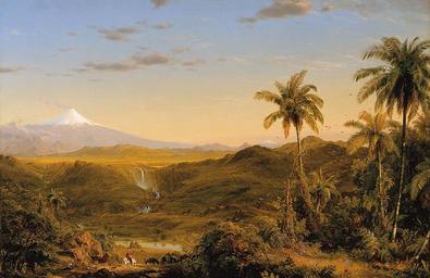 Keywords: fredric church landscape painting art artistic artistry oil on canvas sky clouds trees nature outside scenic country countryside palms palm trees stream river water mountains valley horses rider