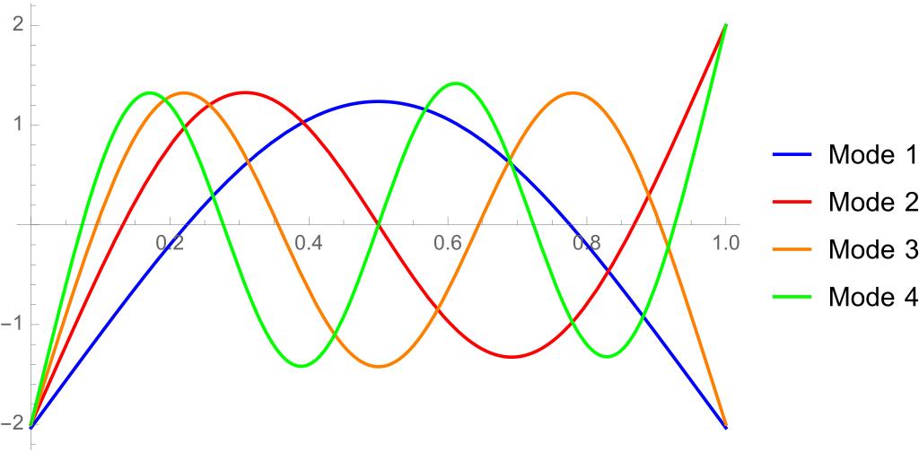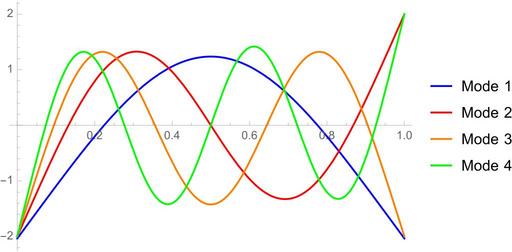 Keywords: FreeBeamVibrationPlot.svg en The first four modes of a free-free Euler-Bernoulli beam of length 1 amplitude A1 1 2016-08-01 own PAR other versions cc-zero Drawings of beams