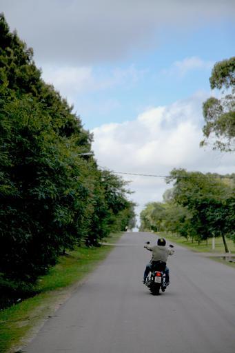 Keywords: freedom motorcycle sky route path helmet travel trees uruguay trail straight going return happiness green leaves autumn quickness speed
