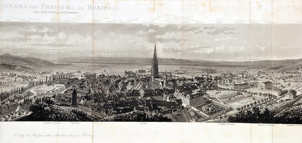 | Keywords: Freiburg Panorama c1860 detail1.jpg Panorama von Freiburg und Breisgau vom Schloßberg aufgenommen; Wagner Freiburg o J um 1860 Aquatinta-Leporello 20 2 x 92 3 cm nach F Schmid; Detail http //www zisska de/ Zisska Schauer ~ 1860 after F Schmid PD-old-100 Images from Zisska Schauer History of Freiburg im Breisgau Location not applicable |