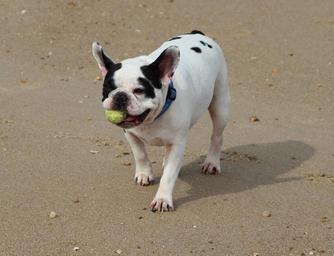 Keywords: french bulldog dog doggy beach ball playing summer