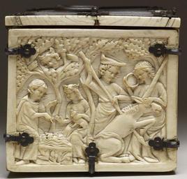 | Keywords: French - Casket with Scenes of Romances - Walters 71264 - Left.jpg This splendid casket is carved with scenes from romances and allegorical literature representing the courtly ideals of love and heroism In the center of the lid knights joust as ladies watch from the balcony; to the left knights lay siege to the Castle of Love the subject of an allegorical battle The remaining scenes on the casket are drawn from well-known stories about Aristotle and Phyllis Tristan and Iseult and tales of the gallant heroic deeds of Gawain Galahad and Lancelot The box may originally have been a courtship gift between 1330 1350 Medieval ivory with modern iron mounts cm 11 8 25 2 12 9 accession number 71 264 5780 Rev John Bowle Wiltshire prior to 1757 Gustavus Brander Christchurch Hampshire prior to 1787 mode of acquisition unknown Francis Douce London prior to 1824 mode of acquisition unknown Sir Samuel Rush Meyrick Goodrich Court Herefordshire prior to 1836 mode of acquisition unknown Lt Col Augustis Meyrick 1848 by inheritance Frédéric Spitzer Paris by purchase Sale Paul Chevallier and Charles Mannheim April 17 1893 no 114 Oscar Hainauer Berlin prior to 1897 mode of acquisition unknown Hector Economos Paris prior to 1913 mode of acquisition unknown Henri Daguerre Paris after 1913 mode of acquisition unknown Arnold Seligmann Rey and Co Paris date and mode of acquisition unknown Henry Walters city Baltimore Walters Art Museum Henry Walters Acquired by Henry Walters 1923 Ivory The Sumptuous Art The Walters Art Gallery Baltimore 1983-1984 The Taste of Maryland Art Collecting in Maryland 1800-1934 The Walters Art Gallery Baltimore 1984 Plants and Flowers in Medieval Manuscripts The Walters Art Gallery Baltimore 1991 Medieval Games of Love and War The Walters Art Gallery Baltimore 1995-1996 Images in Ivory Precious Objects of the Gothic Age The Detroit Institute of Arts Detroit; The Walters Art Gallery Baltimore 1997 Vive la France French Treasures from the Middle Ages to Monet The Walters Art Gallery Baltimore 1999-2000 The Book of Kings Art War and the Morgan Library's Medieval Picture Bible The Walters Art Museum Baltimore; Academy of the Arts Easton Easton; Princeton University Art Museum Princeton; The Mitchell Gallery Annapolis; Williams College Museum of Art Williamstown 2002 Romance of the Rose Visions of Love in Illuminated Medieval Manuscripts The Walters Art Museum Baltimore 2009 place of origin Paris France Walters Art Museum license Casket with Scenes of Romances - Walters 71264 Art of France in the Walters Art Museum Reliefs of unicorns Tristan and Iseult People with unicorns Unicorn hunt Vive la France French Treasures from the Middle Ages to Monet |
