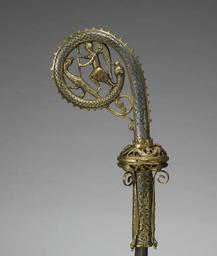| Keywords: French - Crozier with Saint Michael and the Dragon - Walters 44294.jpg Within the curved volute St Michael battles a dragon a symbol of the Devil described in Book of Revelation 12 6-9 This scene is the one most commonly found on Limoges croziers as it symbolizes the victory of Good over Evil It is an especially appropriate metaphor for the staffs carried by abbots and bishops who were entrusted with the protection of the flock and the preservation of the Christian faith The dragon motif continues on the volute the knob and socket of the crozier The lozenge enamel pattern and the curling crockets on the outer edge of the volute recall the scales of a dragon or serpent while more dragons scamper on the knob between 1225 1250 Medieval champlevé enamel on copper with gilding cm 32 22 7 6 accession number 44 294 5105 A Tollin Paris Sale Hotel Drouot Paris May 20 1897 no 49 Brimo de Laroussilhe Paris photographed in the collection before 1917 Leonce Rosenberg Paris Sale Hôtel Drouot Paris June 12 1924 no 62 Brimo de Laroussilhe Paris 1924 Henri Daguerre Paris Henry Walters Baltimore August 27 1925 by purchase Walters Art Museum Henry Walters Acquired by Henry Walters 1925 4000 Years of Modern Art The Walters Art Gallery Baltimore; Baltimore Museum of Art Baltimore 1953-1957 place of origin Limoges France Walters Art Museum license Medieval metalwork in the Walters Art Museum Champlevé of Europe Art of France in the Walters Art Museum Croziers Media contributed by the Walters Art Museum needs category review Léonce Rosenberg |