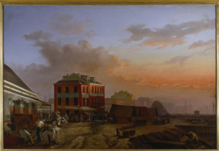 | Keywords: French Market Red Store Grandjean Develle.jpeg New Orleans in the 1840s Painting depicting Mississippi Riverfront in the French Market complex looking towards the Red Stores building Oil on canvas painting 90 2x130 8 cms by Louis Dominique Grandjean Develle via http //louisdl louislibraries org/cdm4/item_viewer php CISOROOT /LPH CISOPTR 151 CISOBOX 1 REC 5 Note Additional info via http //www bridgemanart com/image/Develle-Louis-Dominique-Grandjean-c-1799-1868/French-Market-and-Red-Store-c-1841-oil-on-canvas/3a690a46f87f4099a2e35a5fb2a3fade c Early 1840s Louis Dominique Grandjean Develle d 1868 PD-Art French Market New Orleans New Orleans in the 1840s Horse transport in New Orleans Paintings of New Orleans Paintings in New Orleans |