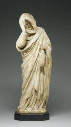 | Keywords: French - Mourner - Walters 27339.jpg In a remarkable expression of realism the artist conveys the weight of personal grief through the rhythmic interplay of heavy folds of drapery The mourner's face is carved but it would not have been visible to the contemporary viewer In honoring the dead funeral monuments of the late Middle Ages often re-created funeral processions through a cloister by placing figures of mourners in an arcade around the sides of the tomb The tomb carved by the sculptor Claus Sluter active 1375-1405 for the Burgundian duke Philip the Bold 1342-1404 in Dijon was the first featuring freestanding figures within a three-dimensional arcade The Walters mourning monk must come from a slightly later tomb influenced by Sluter's new realism and monumentality ca 1450 Late Medieval alabaster cm 44 12 5 accession number 27 339 16689 Arnold Seligmann Rey and Co New York Henry Walters city Baltimore Walters Art Museum Henry Walters Acquired by Henry Walters 1919 Illuminated Manuscripts Masterpieces in Miniature The Walters Art Gallery Baltimore 1984-1985 Songs of Glory Medieval Art from 900-1500 Oklahoma Museum of Art Oklahoma City 1985 Highlights from the Collection The Walters Art Gallery Baltimore 1998-2001 Vive la France French Treasures from the Middle Ages to Monet The Walters Art Gallery Baltimore 1999-2000 place of origin Burgundy France Walters Art Museum license Renaissance sculpture in the Walters Art Museum Medieval ivory in the Walters Art Museum Art of France in the Walters Art Museum Media contributed by the Walters Art Museum needs category review Vive la France French Treasures from the Middle Ages to Monet |