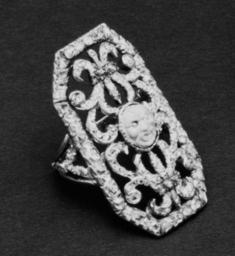 | Keywords: French - Ring - Walters 571762 - Group.jpg The ring displays an octagonal bezel in openwork fleurs de lys pattern surrounding a central jadeite mask It is thought that this ring was made for a member of the Spanish court ca 1770 gold jadeite diamond ruby cm 3 3 accession number 57 1762 30364 Henry Walters Baltimore date and mode of acquisition unknown Laura F Delano New York date of acquisition unknown by gift Walters Art Museum Gift of Laura F Delano 1946 Jewelry - Ancient to Modern The Walters Art Gallery Baltimore 1979-1980 Objects of Adornment Five Thousand Years of Jewelry from the Walters Art Gallery Baltimore Cooper-Hewitt National Design Museum New York; Chrysler Museum of Art Norfolk; Carnegie Museum of Art Pittsburgh; San Antonio Museum of Art San Antonio; Philbrook Museum of Art Tulsa; Honolulu Academy of Arts Honolulu; New Orleans Museum of Art New Orleans; Milwaukee Art Museum Milwaukee; Minneapolis Institute of Arts Minneapolis; Toledo Museum of Art Toledo; The John and Mable Ringling Museum of Art Sarasota 1984-1987 Jewelry from the Walters Art Museum and the Zucker Family Collection The Walters Art Gallery Baltimore 1987 place of origin Spain Walters Art Museum license Jewellery in the Walters Art Museum Art of France in the Walters Art Museum Media contributed by the Walters Art Museum needs category review |