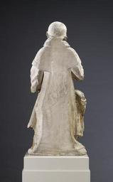 | Keywords: French - Saint Damian - Walters 27285 - Back.jpg Medieval medicine offered few cures Christians focused their hopes for recovery from illness or accident on their prayers to saints to intercede for them with God Saints Cosmas and Damian Protasius and Gervasius were two pairs of twin brothers who were invoked for their healing of the sick The statues are from the hospital complex at Abbeville built between 1484 and 1492 where they may have stood in niches at the entrance to the church The vigorous modeling and realistic details- as in the variety in their facial expressions- are made more vivid by the use of color and give credibility to the saints' humanity Their size relative to the sick at their feet conveys their superhuman powers while the clerical garments lend them authority The stocky proportions are typical of French sculpture of the late 15th century Damian seen here with an ointment jar and a spatula prepares to cure a lame man supported by a crutch between 1484 1492 Late Medieval limestone with traces of paint and gilding cm 70 31 8 19 8 accession number 27 285 2645 Hôtel-Dieu Abbeville prior to 1904 from the hospital demolished in 1904 Dikran Kelekian Paris date of acquisition unknown by purchase Henry Walters city Baltimore Walters Art Museum Henry Walters Acquired by Henry Walters 1912 Vive la France French Treasures from the Middle Ages to Monet The Walters Art Gallery Baltimore 1999-2000 place of origin Abbeville France Walters Art Museum license Renaissance sculpture in the Walters Art Museum Art of France in the Walters Art Museum Media contributed by the Walters Art Museum needs category review Vive la France French Treasures from the Middle Ages to Monet |
