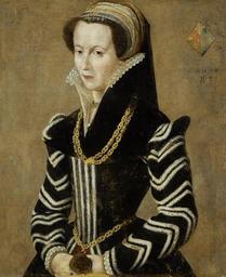 | Keywords: French School 16th c Portrait of a lady in a black and white dress.jpg Portrait of a lady in a black and white dress; indistinctly inscribed and dated 'AEATIS SV / 3' upper right oil on canvas 78 x 64 cm http //www bonhams com Bonhams century 16 French School PD-old-100 Images from Bonhams Black and white clothing in art female 16th-century portraits with coat of arms | ||||