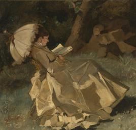| Keywords: French School 19th-century Woman holding an umbrella.jpg en FRENCH SCHOOL 19TH CENTURY WOMAN HOLDING AN UMBRELLA bears false signature G Courbet lower left oil on canvas 129 7 by 135 8 cm 2013-01-31 11 08 14 http //www sothebys com/en/auctions/ecatalogue/2012/so-baroni-n08857/lot 33 html Unknown French School 19th-century PD-Art Uploaded with UploadWizard 19th-century paintings Paintings of women reading in chairs outdoors Images from Sotheby's | ||||