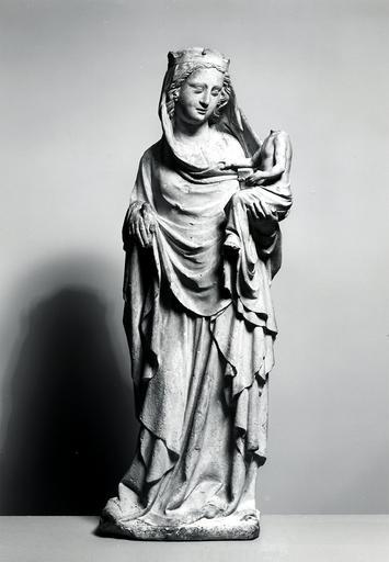 | Keywords: French - Virgin and Child - Walters 27271.jpg This delicately carved statue probably comes from the church of Meulan north of Paris where it was intended to be seen in the round as suggested by its fully carved back The Virgin holds out a lily and supports the Child holding a prayer book with her left arm Her mantle is also her veil an elegant combination that unifies the figure in a manner frequently seen in 14th-century art including Gothic ivories ca 1375 Medieval limestone with traces of paint cm 76 26 7 19 1 accession number 27 271 5101 From the church at Meulan near Mantes Seine et Oise Georges Joseph Demotte Paris by purchase Henry Walters city Baltimore Walters Art Museum Henry Walters Acquired by Henry Walters 1910 The International Style The Arts in Europe Around 1400 The Walters Art Gallery Baltimore 1962 Vive la France French Treasures from the Middle Ages to Monet The Walters Art Gallery Baltimore 1999-2000 place of origin Meulan France Walters Art Museum license Medieval ivory in the Walters Art Museum Art of France in the Walters Art Museum Media contributed by the Walters Art Museum needs category review Sculptures of Madonna and Child Vive la France French Treasures from the Middle Ages to Monet |