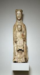| Keywords: French - Virgin and Child - Walters 27255.jpg This wooden sculpture of the Virgin and Child is typical of the Romanesque style In order to convey the idealized heavenly nature of the subject the artist gave the holy figures compact self-contained bodies covered by clinging linear drapery The statue is carved in the round allowing it to be used both as a stationary devotional object in a church and as a portable image carried in procession on religious feast days The Virgin has a hollowed-out back possibly to contain a relic Statues such as this are called Thrones of Wisdom as the Virgin Mother of God served as a throne for Christ the incarnation embodiment of Divine Wisdom between 1175 1225 Medieval wood walnut with polychrome cm 93 5 27 29 accession number 27 255 3972 At the Church of Précigné Sarthe from at least the 15th century until the early 20th century Curé Tessier Sillé-le-Guillaume until 1914 Henri Daguerre Paris Henry Walters Baltimore August 23 1927 by purchase Walters Art Museum Henry Walters Acquired by Henry Walters 1927 Vive la France French Treasures from the Middle Ages to Monet The Walters Art Gallery Baltimore 1999-2000 place of origin Le Mans France Walters Art Museum license Medieval art in the Walters Art Museum Art of France in the Walters Art Museum Media contributed by the Walters Art Museum needs category review Sculptures of Madonna and Child Vive la France French Treasures from the Middle Ages to Monet |