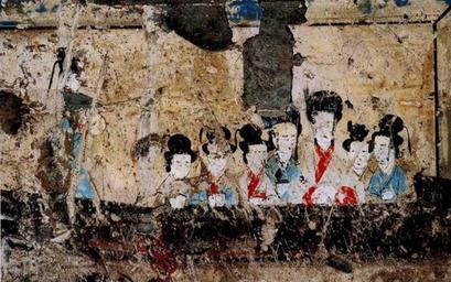 | Keywords: Fresco of a Group of Women from a Han Dynasty Tomb in Sian, Shensi.jpg en Fresco of a group of women from a Han dynasty tomb in Sian Shensi The tomb found in the Xi'an University of Technology <br>For more information see http //www tandfonline com/doi/abs/10 1179/204705814X13975704317633 src recsys journalCode ysic20 On-site conservation of the tomb mural of the Western Han dynasty at Xi'an University of Technology Xi'an China 中 西安理工大學西漢壁畫墓現場修護 Western Han dynasty 202 BC - 9 AD http //blog sina com cn/s/blog_b311ea470101f64n html anonymous other versions PD-old-100 Art of the Han Dynasty Han Dynasty Tomb Painting Paintings of women History of Shaanxi |