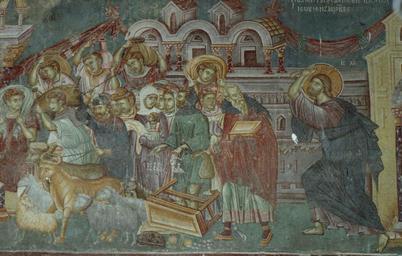 Keywords: Frescos from St. Nikita Church in Banjani 0125.jpg mk Ф ески во Ц квата Св икита во Бањани Скопско en Frescos in St Nikita Church near Skopje in Macedonia ru Ф ески це кви св икиты в с Баняни близ Скопье акедония http //sankire narod ru/NikitaCh html це ковь св икиты century 14 AD Zografs Mihailo and Evtihij PD-Macedonia PD-Art Paintings in St Nicetas Church Banjani |