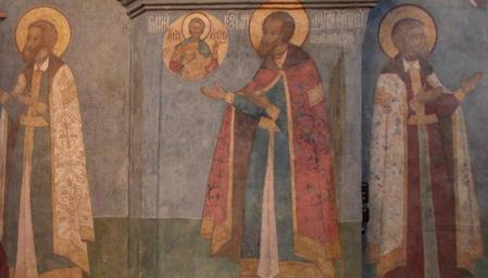 | Keywords: Frescos in Cathedral of the Archangel in Moscow - west wall 02.jpg ru АРХА ГЕЛЬСКИЙ СОБОРСТЕ ОПИСЬ АДГРОБ ЫЕ ПОРТРЕТЫ К ЯЗЕЙ Бо ис Васильевич ВОлоцкий А д ей Васильевич Болга ский Иоанн Владими ович Донской 1652-1666 гг http //archangel-cathedral kreml ru/virtual-tour/ 17 other versions PD-old-70-1923 Files uploaded by Shakko from various sources Frescos in Cathedral of the Archangel in Moscow grave portraits 06 Boris Vasilyevich of Volotsk Andrey Vasilyevich the Younger Ivan Vladimirovich of Serpukhov |