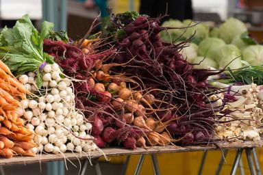 | Keywords: berkeley california united states unitedstates food vegetable From left to right: carrots, onions, radishes/beets, spring onions (?), lettuce in background. From left to right: carrots, onions, radishes/beets, spring onions (?), lettuce in background. |
