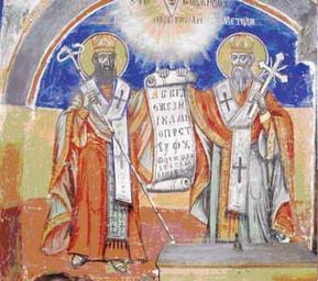 | Keywords: Freska na Sv. Kiril i Metodij od Sv. Nikola Babinski.jpg mk Бабино ц ква Св икола св Ки ил и св етодија олта ен п осто јужен ѕид http //www kalamus com mk/pdf_spisanija/patrimonium_4/24_1 20 20016_4 20Spisanie 202011 20Nikola pdf THE IMAGES OF THE HOLY SLAV TEACHERS ST CYRIL AND ST METHODIUS IN THE FRESCO PAINTING OF THE 19th CENTURY OF PELAGONIJA MARIOVO AND DEMIR HISAR Josif and Jakov Radevič 1888 PD-Macedonia Frescos of Saints Cyril and Methodius Frescos in the Republic of Macedonia St Nicholas Church Babino |